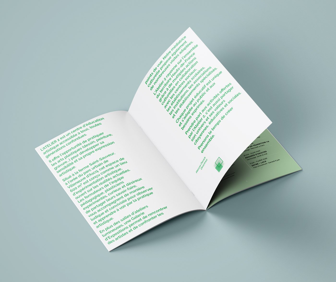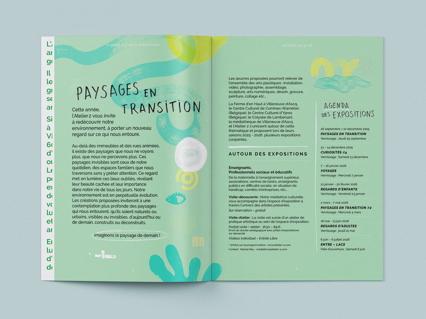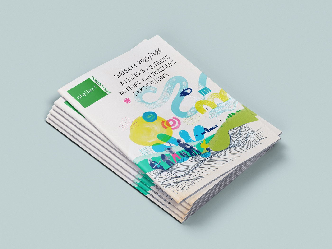 Création avec l’agence Tilt d’un visuel et d’une brochure de saison pour Atelier2.