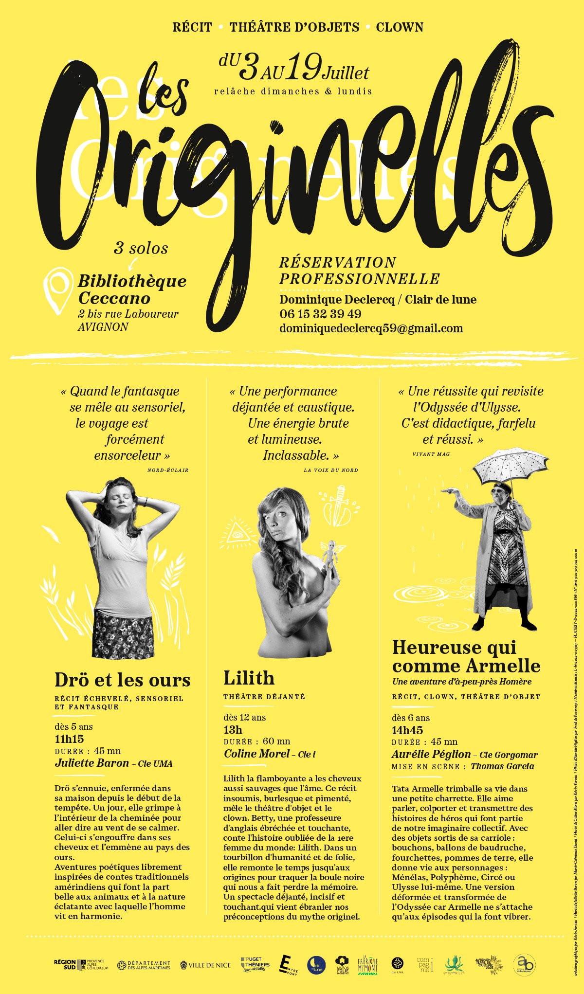 3 spectacles gaillards et inspirés entre récit, théâtre d’objets et clown, présentés à la médiathèque Ceccano pendant le festival off d’Avignon.